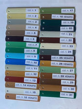 I colori nr. 6-19-20-22-24-25 non sono garantiti contro eventuali deformazioni (nonostante l’uso dei rinforzi) e scolorimenti. A causa della particolare lavorazione di queste tapparelle per case, la venatura dei colori finto legno nr. 14-16-18-25-26-28, sono soggette a variazioni rispetto ai campioni in cartella. Non sono garantite le tapparelle di larghezza oltre 2 mt. A causa della particolarità del materiale lavorato, eventuali modifiche dei pesi non potranno dare luogo a contestazione alcuna.